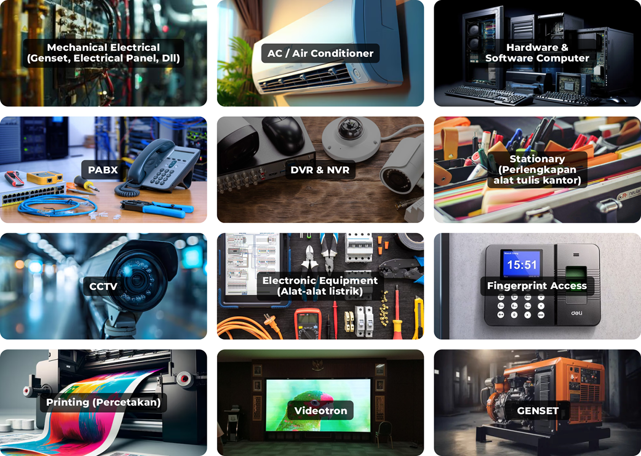 Pada awalnya, perusahaan ini hanya berfokus pada layanan service, pemeliharaan (maintenance) di bidang mechanical electrical, serta komputer. Namun, seiring meningkatnya permintaan dari klien yang tidak hanya membutuhkan jasa, tetapi juga pengadaan peralatan, kami memperluas cakupan layanan ke bidang pengadaan barang dan jasa.